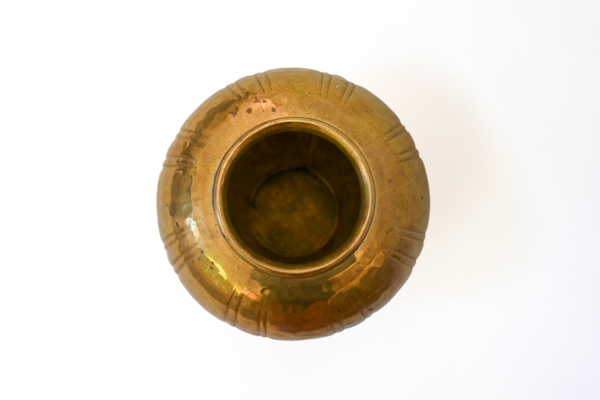 This antique ribbed vase has a stunning patina. This piece is solid brass, with the form and function required to bring the old and the new together in perfect harmony. This mid-century gem would be perfect as a forever flower vase, or collection vessel for your favorite things.