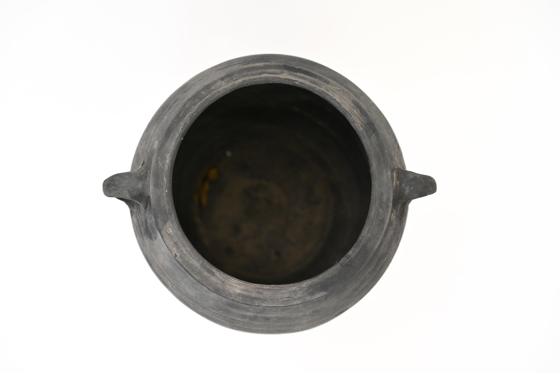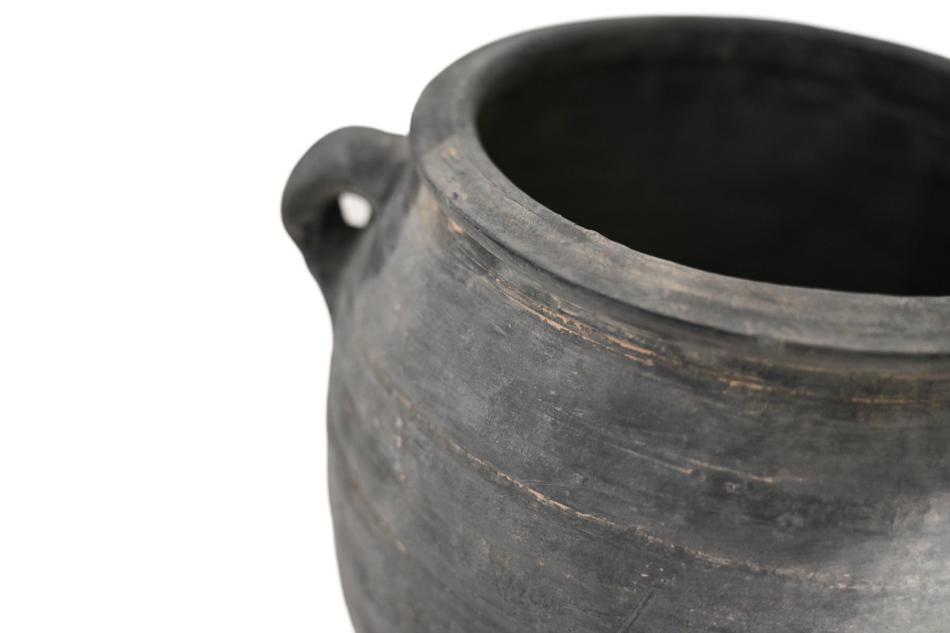 This Shanxi Providence, China, vintage vase boasts of a matte black patina that fits any design. Originally, this would have been used for storing liquids like wine, water, or oil—each piece, including this one, is handmade. We love this beautiful vessel, collecting dramatic branches on your kitchen island or as a statement of beauty on your curated shelves.