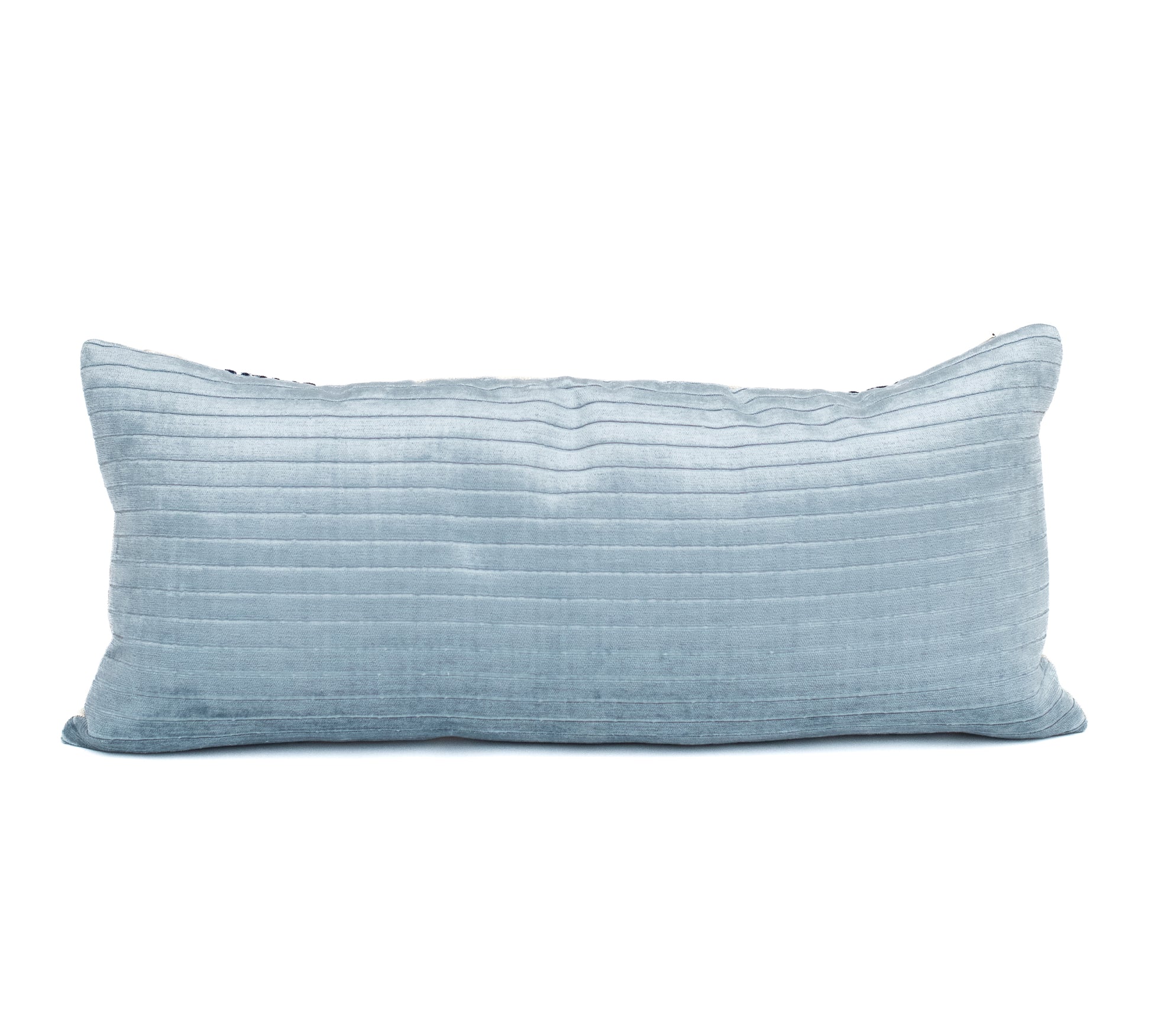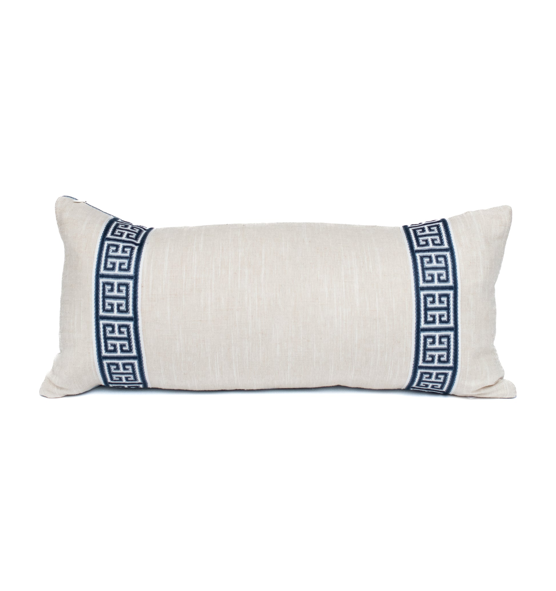 A classic color palette of blue and white linen, with a simple tape detail, elevating this pillow to the perfect accent on your bed or sofa. Designed by Perch Interiors and handmade by a local artisan with a hidden zipper.