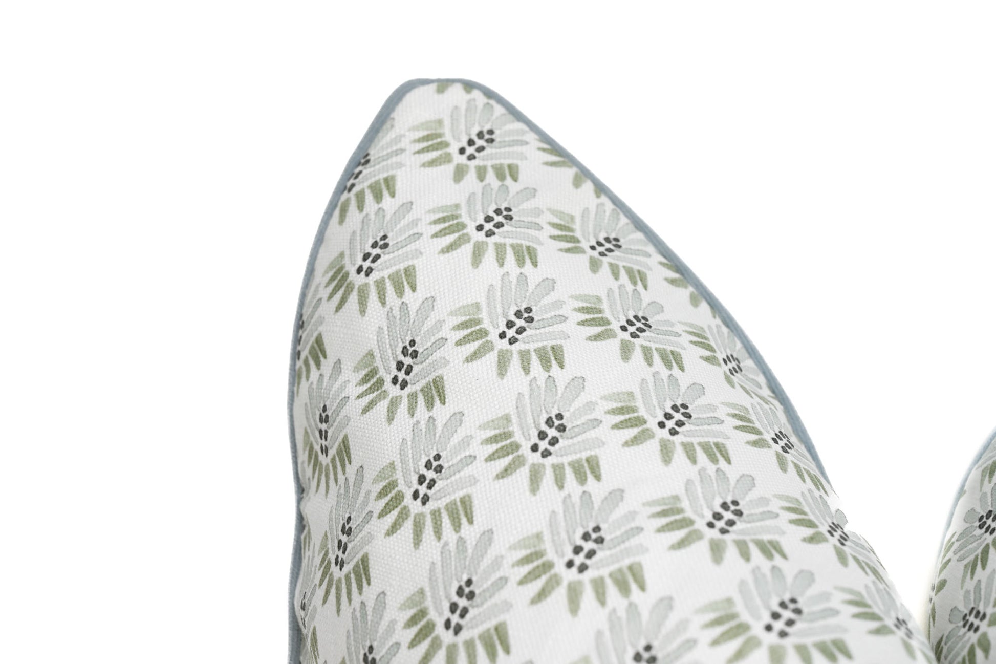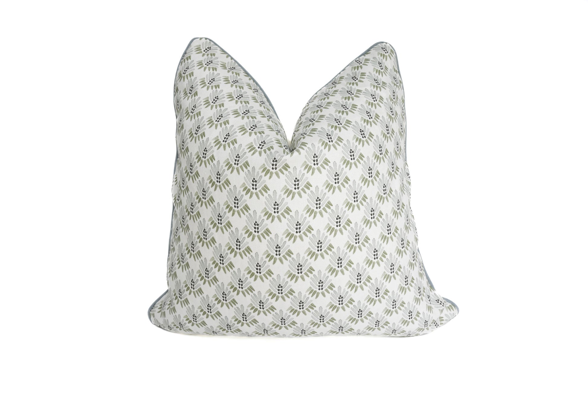 Bring timeless charm to your space with this handcrafted pillow cover, featuring a soft botanical block print in olive and sage on an ivory cotton canvas. Finished with a solid back and soft edges, it's perfect for adding a subtle, natural touch to any room.
