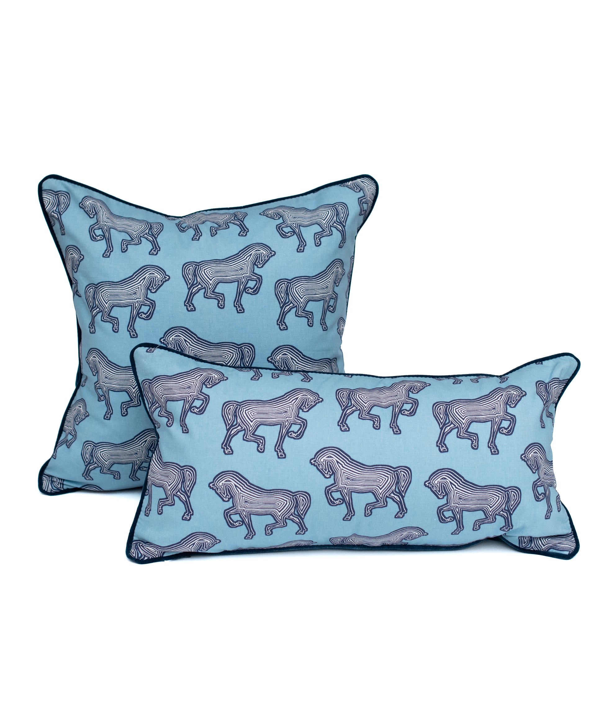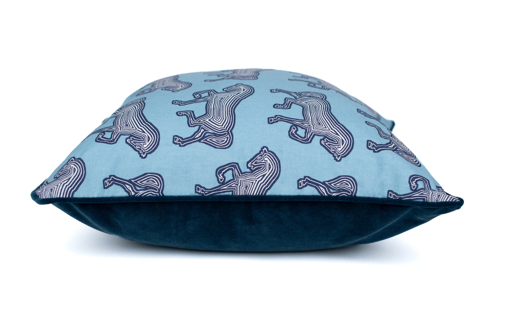 Made with the Schumacher Faubourg cotton performance fabric, this pillow elevates any room by adding an element of equestrian flair and timeless style. Piped and backed in a luxe navy blue velvet, thus creating the perfect compliment to the Faubourg design. Designed by Perch Interiors with a hidden zipper.