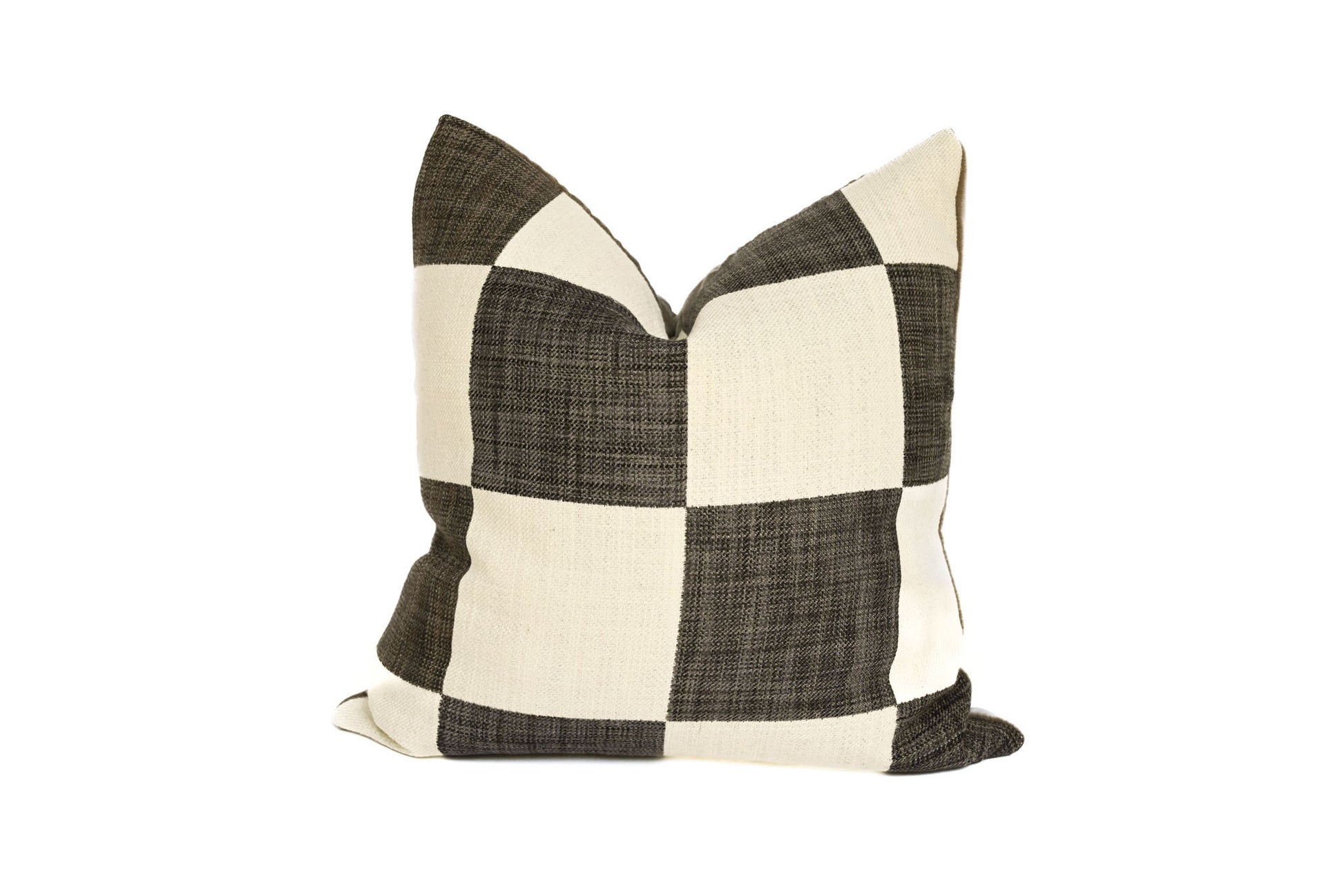 Bring timeless charm to your space with this checkered Schumacher Smithton pillow cover, featuring a textured weave in warm brown, charcoal, and ivory tones. The classic pattern gets a modern twist with its linen-like finish, making it the perfect accent for cozy, rustic, or minimalist decor. Whether tossed on a sofa or layered on a bed, this versatile piece adds a tailored yet relaxed vibe to any room.