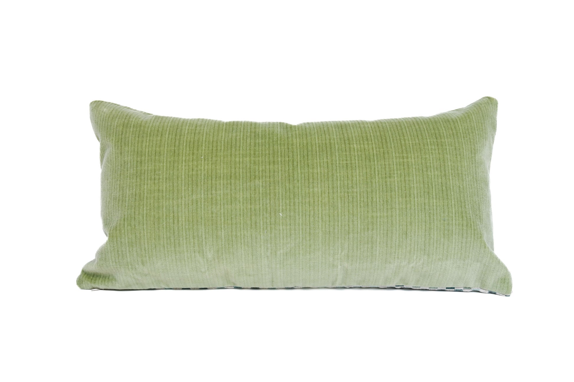 This pillow cover is an elevated twist on the classic checkerboard in lumbar dimensions. The sage Schumacher velvet backing provides a comfortable, lived-in feel that can transform any space and pallet.