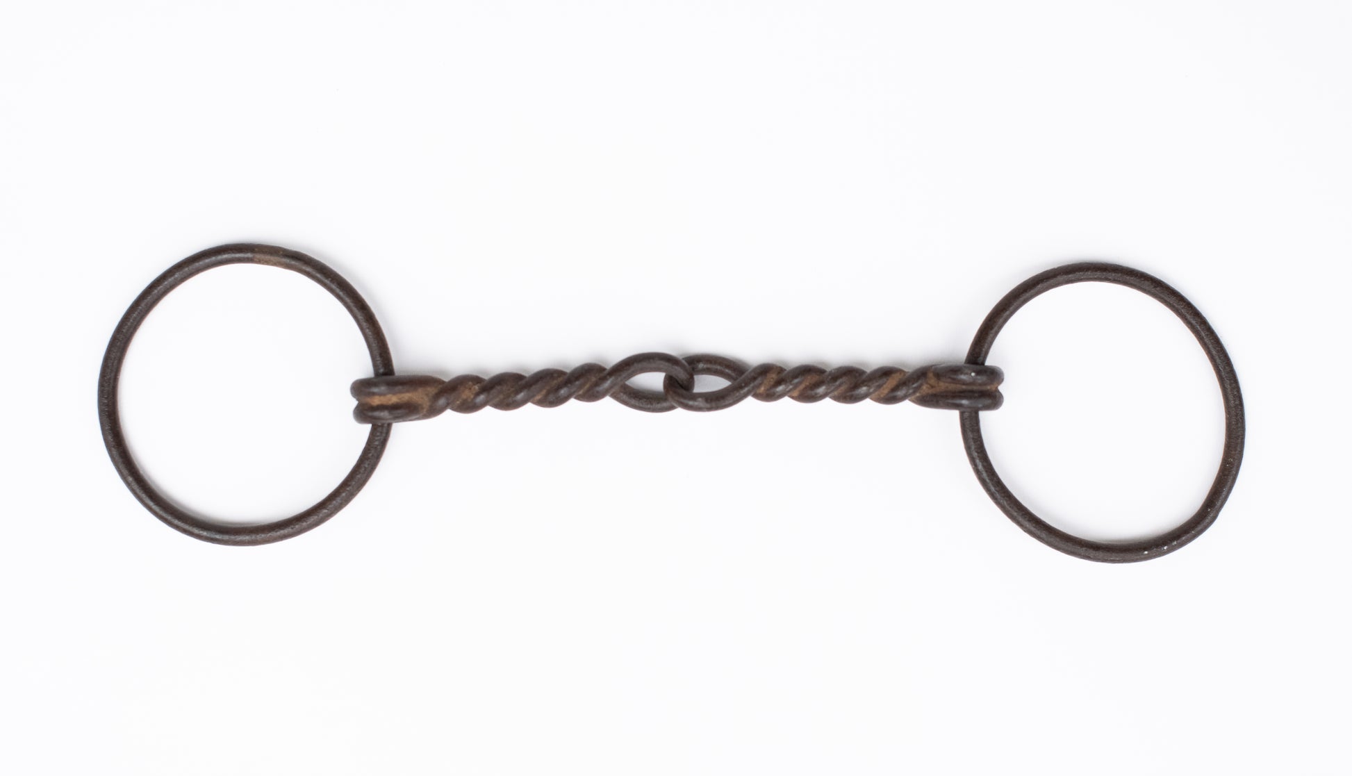 Twisted wire bit aged to dark bronze with hints of copper. Used in both English and Western disciplines. Great for layering on a stack of books, fabulous mounted inside a shadow box, etc. Adds a unique equestrian chic detail to any home.
