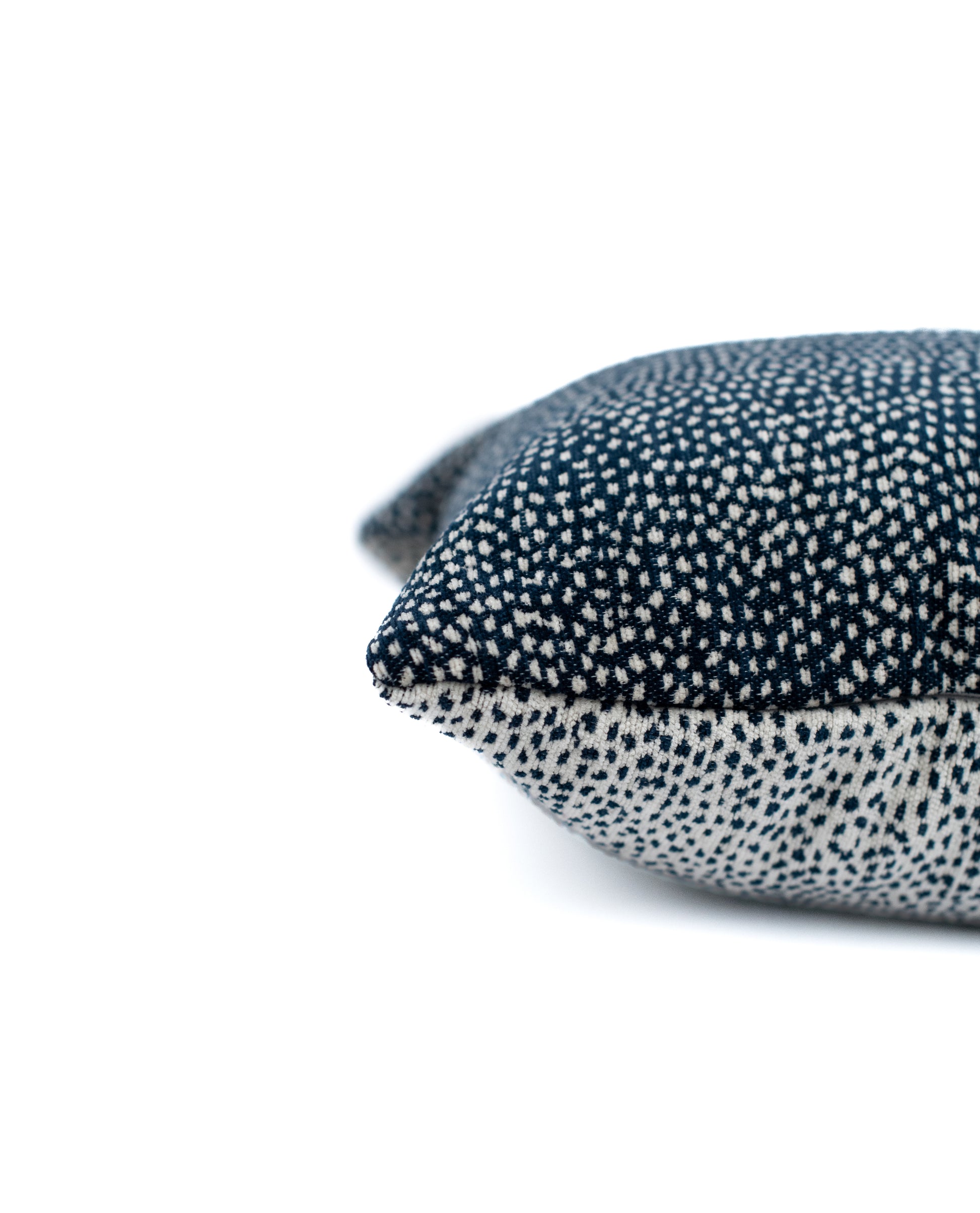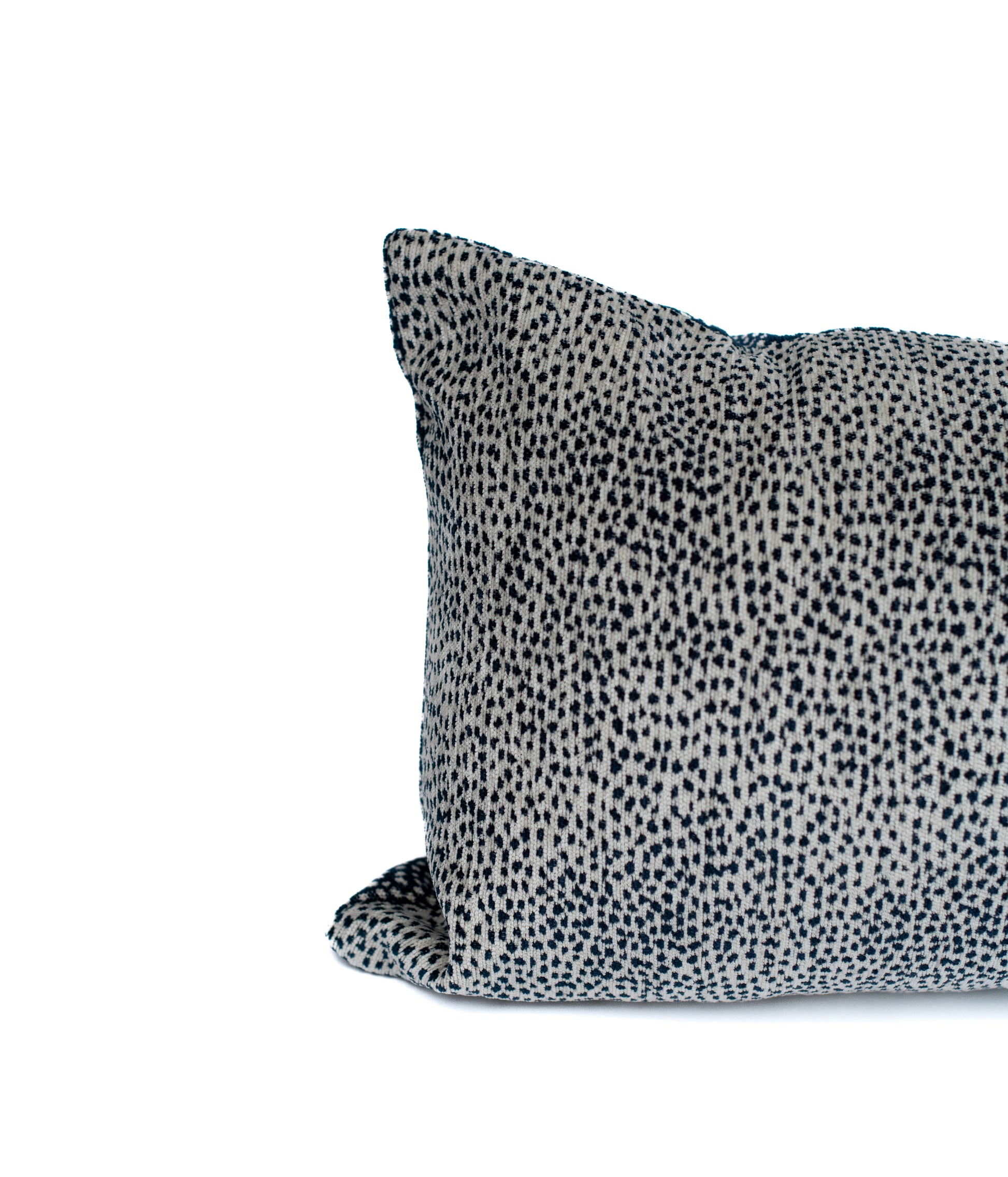 The Calico Navy pillow brings a soft texture and simple pattern that can easily be layered with larger prints, solids, and florals. The inverse pattern on each side adds interest and comfort to any room. Designed by Perch Interiors and handcrafted by local artisans with a hidden zipper detail.